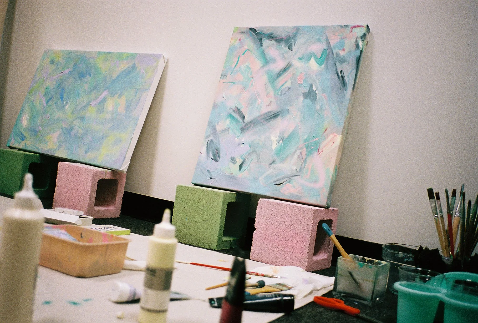 My commission process is collabortive in nature. I approach each piece as a medly of my practice and your story. We’ll work together gathering inspiration from various works, colors, compositions, and the space the art will live in. I will then create a custom color palette for you based on our discussions, and upon your aproval begin initial layers and gestures on the canvas. You will also experience the evolution of the work as I share my progress throughout.