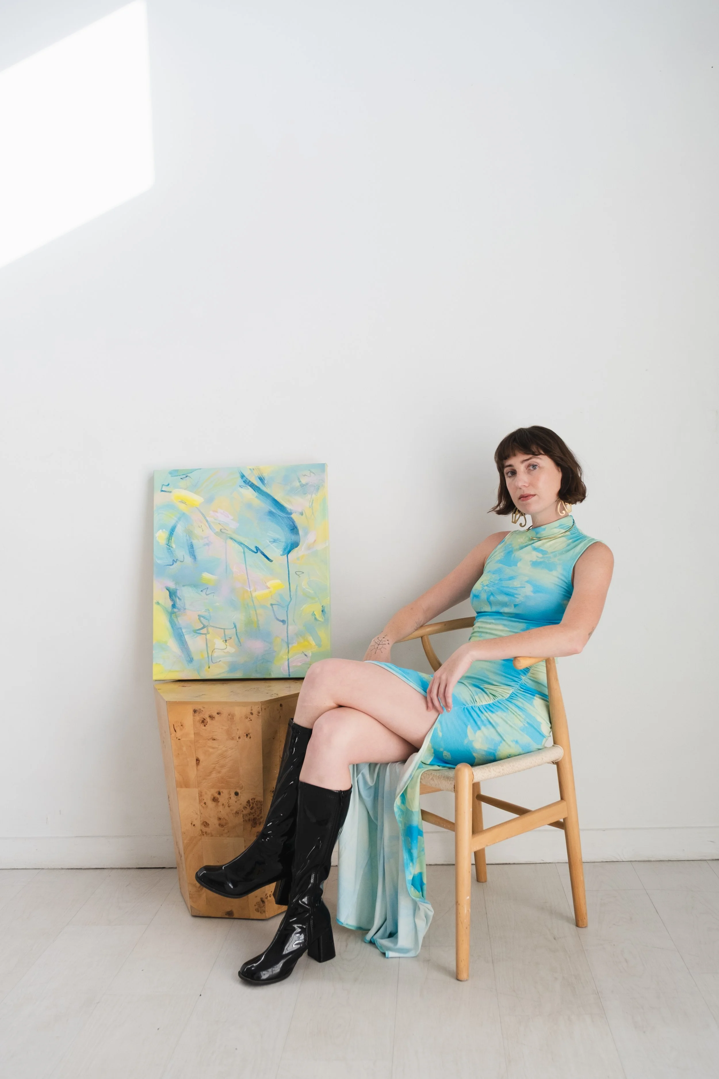My painting process is intuitive, gestural, and acts as a form of color therapy. I intentionally employ a range of techniques, including dripping, pouring, and mixing paint, to create a sense of depth and motion. This process becomes a meditative practice, where the unpredictability of abstraction coalesces into a cohesive expression of my inner landscape.